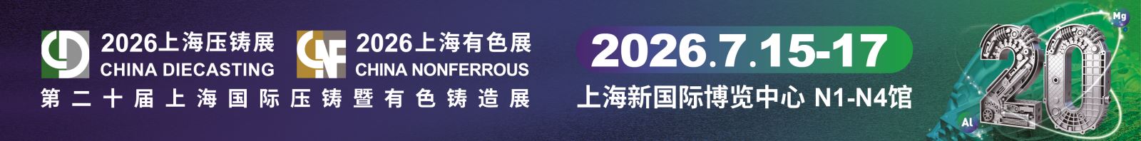 第二十届上海国际压铸暨有色铸造展(CHINA DIECASTING & CHINA NONFERROUS 2026)将于2026年7月15–17日在上海新国际博览中心(N1–N4馆)隆重举办。汇聚来自全球的压铸及有色铸造全产业链企业与专业人士,集中展示新材料、新工艺、新应用,深度聚焦智能制造、绿色低碳、模具创新等热点方向。