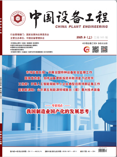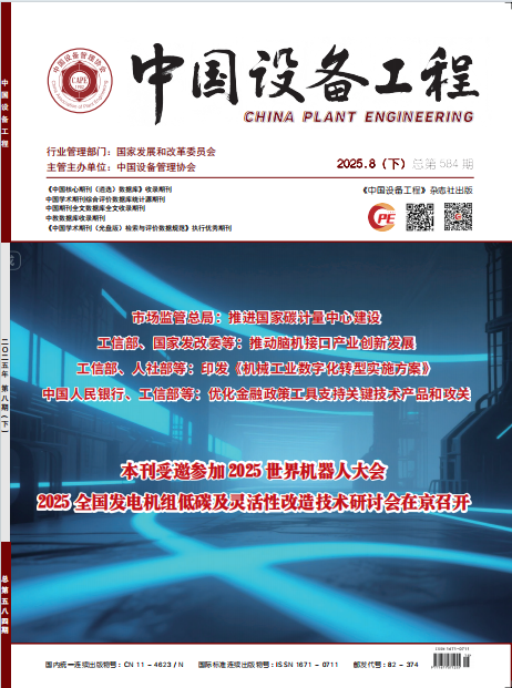 《中国设备工程》杂志是极具专业性的月刊,覆盖面准、前瞻性强。它以宏扬中国“智造”,服务实体经济为已任,致力于推动中国绿色发展,为建设生态文明做贡献。杂志社顾问团汇聚了一批权威院士专家,侧重宣传报道工业领域的发展方针、政策、法规及设备管理、推广、应用、技改等解决方案。内容主要涉及机械、冶金、石化、化工、有色、电力、电子、煤炭、交通、铁道、航空、航天、船舶、建工、建材、轻工、纺织、汽车、军工等领域。