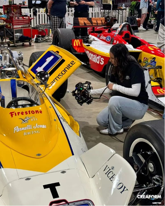 MetraSCAN BLACK+™|Elite 集便携性与坚固性于一身,学生无需贴点或喷粉即可获取精细数据,能够在不改变物品原始状态的前提下扫描老爷车和文物。凭借处理多种纹理与表面粗糙度的能力,这款三维扫描仪在历史性的“长滩大奖赛印地赛车挑战赛”中大展身手,学生现场扫描了 20 世纪 70 至 80 年代的经典款赛车。