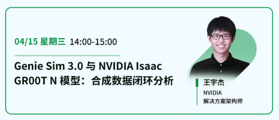 2026年4月14日至16日,每天14:00-15:00,“NVIDIA机器人技术实战三部曲”系列网络研讨会将正式开讲。三场演讲深度拆解Isaac Lab、GR00T、Jetson Thor等核心技术,为开发者提供从仿真到边端部署的一站式实战指南。