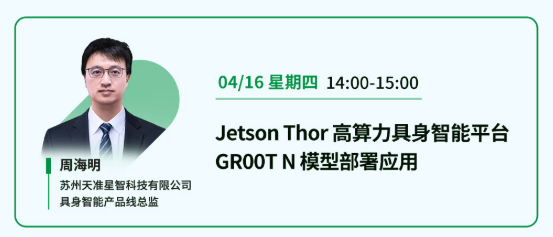 苏州天准星智科技有限公司具身智能产品线总监周海明,长期从事具身智能与智能驾驶产品开发,拥有深厚的产品研发与技术管理经验,具备具身产品全栈技术能力,能够主导复杂技术体系的搭建与落地。他将系统介绍GR00T N基础大模型在Jetson Thor上的部署与闭环优化,实现自主感知、决策与执行,并支持持续学习以适应新任务。