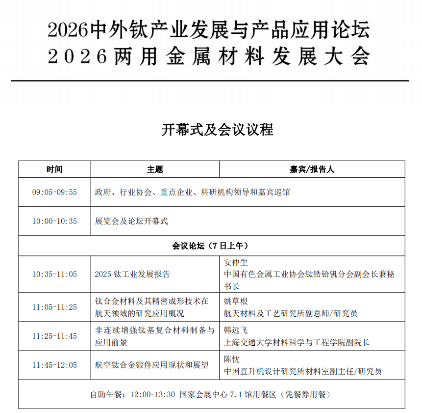 您现在的位置:首页 >  技术讲座  > 2026中外钛产业发展与产品应用论坛