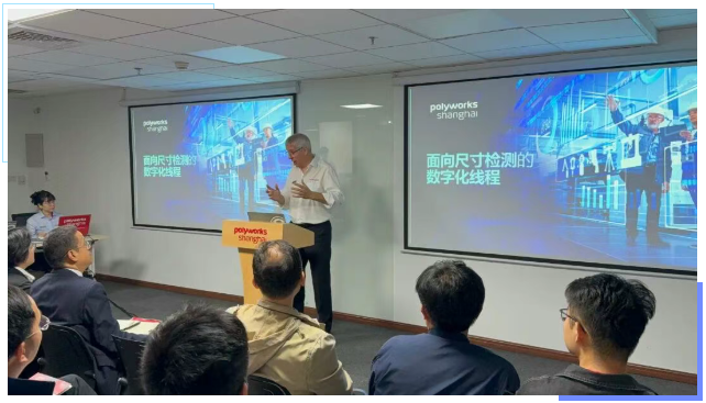活动伊始,PolyWorks Shanghai 总经理王伟先生在致辞中强调,数字化不仅意味着工具的更新,更代表着思维方式的转变。让设计、生产、检测等环节共享同一份真实的数据,是实现高效协同与持续改进的基础。
