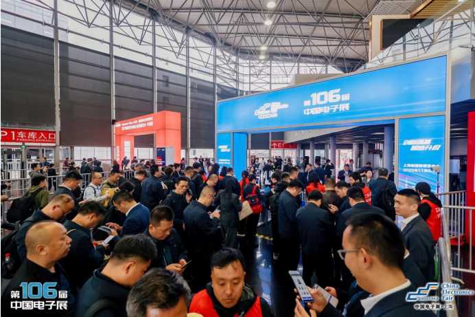 第106届中国电子展目前正火热进行。展会首日即迎来“开门红”,成功吸引20余个行业买家团及上万名专业观众到场参观,涵盖电子信息领域的企业、行业协会、高校及科研院所的专家、领导与从业人员。