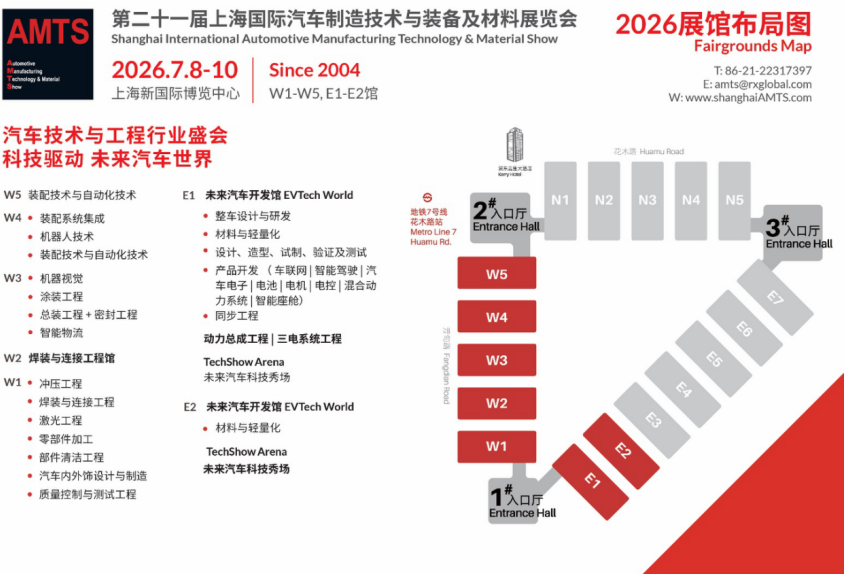 作为专业的汽车技术与工程行业盛会,AMTS 2026第二十一届上海国际汽车制造技术与装备及材料展览会,已从汽车制造技术展示平台跃升为全球汽车智造生态的枢纽,紧跟行业发展及市场需求,更加关注未来汽车开发板块——聚焦智能网联、车身轻质结构、AI科技、信息化、数字化生产等高新科技,一站式展示新能源汽车高新科技,整车材料与设计、开发与试制、验证与测试、三电系统工程、车身及部件冲压、连接及涂装、总装、质量控制及测试、核心部件加工、自动化装配与生产等工程领域创新技术及解决方案。