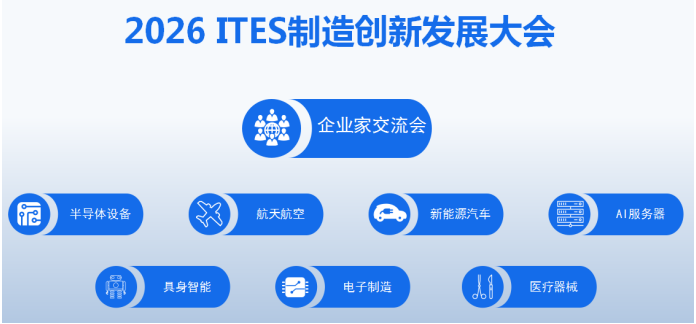 作为2026 ITES“展+会”生态的核心组成,同期系列会议聚焦更行业核心零部件及先进工艺应用,精准覆盖半导体设备、新能源汽车、AI 服务器、具身智能、电子制造、医疗器械、航空航天7大热点赛道,打造80余场高质量主题论坛。