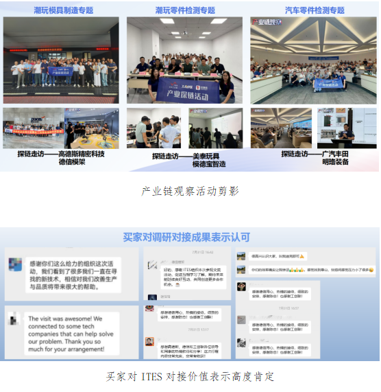 今年,ITES联合工创联、钛媒体集团发起“产业链观察”专项计划,先后深入潮玩、汽车零部件、医疗器械等重点赛道,吸引美泰玩具、万代玩具、伟易达、高德斯精密、华阳精机、比亚迪、东风日产、登云汽配、三五汽车、大冶摩托等一众头部企业深度参与。这些企业主动组织生产部门联动展会,开展 AI 表面质量检测、去毛刺自动化等专题调研,推动多项工艺难题的解决。
