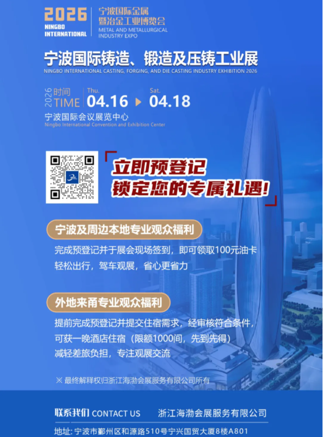 2026 宁波国际铸造锻造及压铸工业展览会,将于 4 月 16-18 日在宁波国际会展中心盛大启幕!