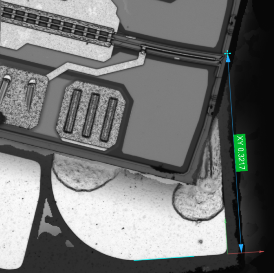 ▲在连接垫上未发现任何裂纹。但传感器内部有许多空洞。
