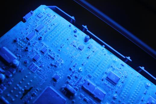 上图为汽车电子线路板在LEA-280B紫外线灯下的效果。