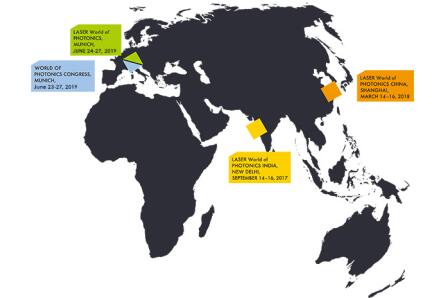 LASER World of PHOTONICS全球系列展除了LASER World of PHOTONICS(慕尼黑国际应用激光、光电技术贸易博览会)、LASER World of PHOTONICS CHINA(慕尼黑上海光博会),还有LASER World of PHOTONICS INDIA(慕尼黑印度应用激光、光电技术贸易博览会)、World of PHOTONICS CONGRESS(世界光学技术大会),而且未来LASER World of PHOTONICS系列展还将不断扩充。