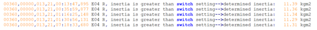 实际的计算的转动惯量为11kgm2,应当为高转动惯量情况,钥匙应拨到1档,实际情况是在0档,故报错。
