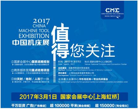 2017CME中国机床展,由国家商务部外贸发展局主办,上海华品展览服务有限公司承办, 将于来年3月1日至4日在国家展览中心(上海虹桥)开展,展览面积超100,000平方,预计专业观众100,000人次。