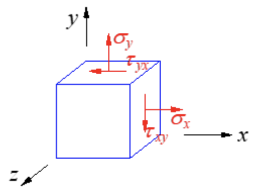 单元体的尺寸无限小,设每个平面上的应力均匀分布,根据平衡条件,任意一对相互平行平面的应力大小相等,方向相反,因此单元体的应力描述只需要说明三个平面上的应力即可。每个平面上有三个应力分量,一个正应力,两个切应力,共有九个应力分量,根据切应力互等定理,则有六个独立的应力分量,三个正应力、三个切应力