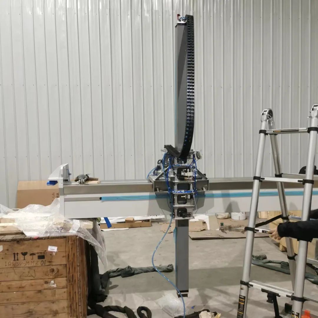 X横梁的安装比较惊险,组装好的X Z要吊离地面3.5米左右后安装,要保证吊起的X横梁水平,Z的左右位置也需要调整,吊运过程小心谨慎,避免横梁大幅晃动,而且需要客户吊装人员和现场工程师的紧密配合,落位后,需要调节X横梁左右的水平及扭摆,属实是精心细致的大工程。