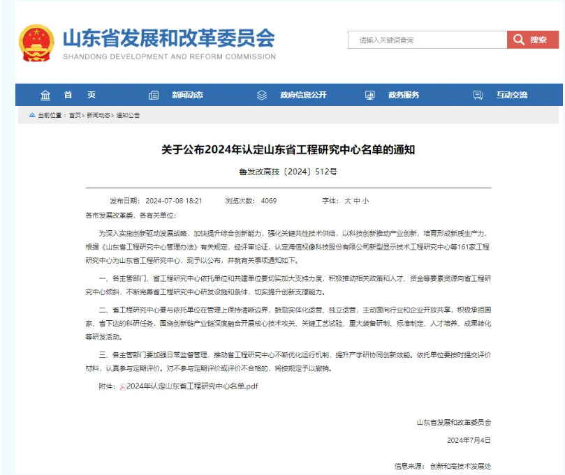 根据《山东省工程研究中心管理办法》有关规定,山东省发展和改革委员会组织开展了2024年度山东省工程研究中心申报认定工作。经评审论证,山东省发展和改革委员会发布了“关于公布2024年认定山东省工程研究中心名单的通知”,海克斯康制造智能技术(青岛)有限公司“智能检测装备山东省工程研究中心”成功获批,彰显了公司在该领域技术创新、人才培养、成果转化等方面的综合实力。